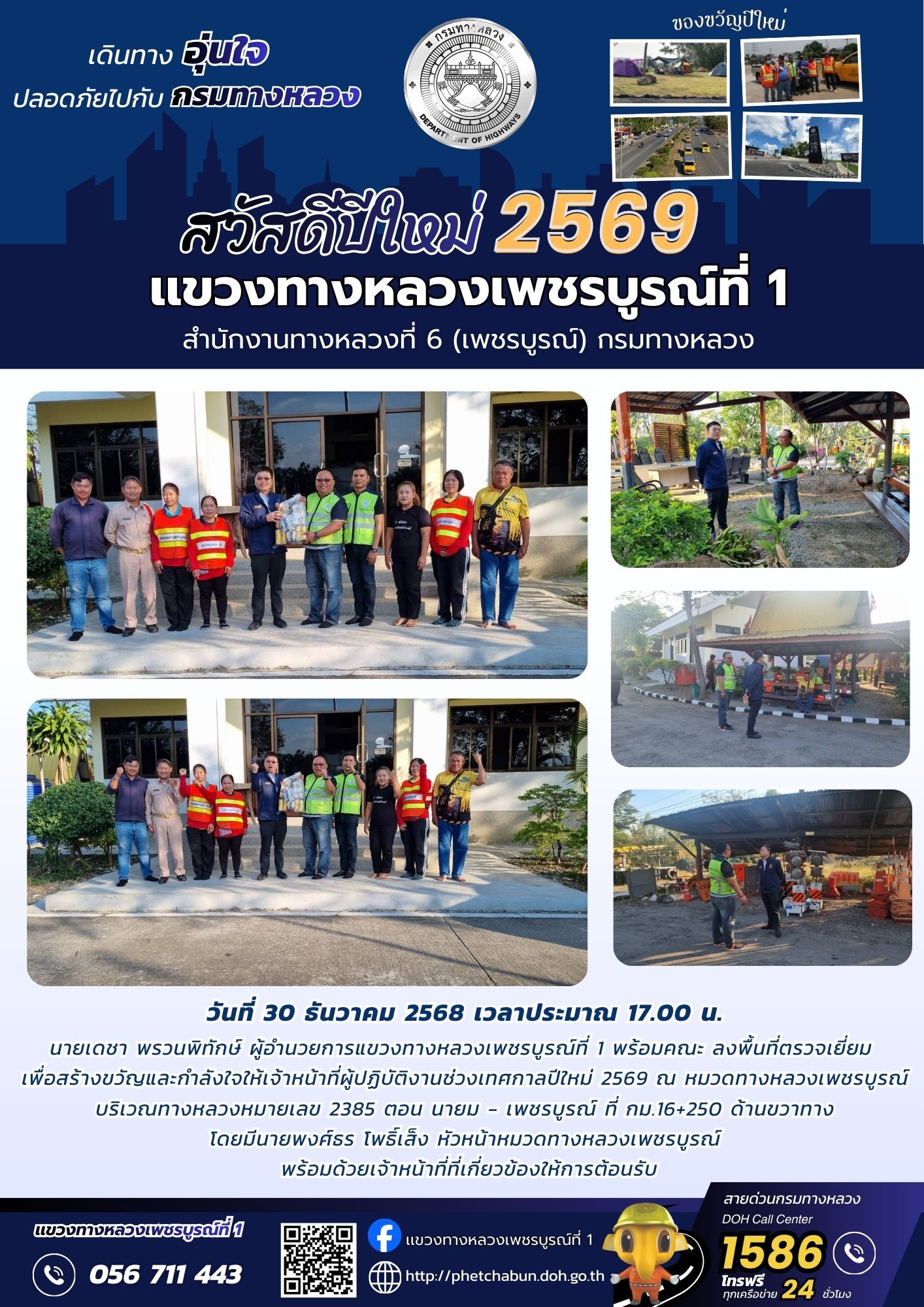 นายเดชา พรวนพิทักษ์ ผู้อำนวยการแขวงทางหลวงเพชรบูรณ์ที่ 1 พร้อมคณะ ลงพื้นที่ตรวจเยี่ยม เพื่อสร้างขวัญและกำลังใจให้เจ้าหน้าที่ผู้ปฏิบัติงานช่วงเทศกาลปีใหม่ 2569 ณ หมวดทางหลวงเพชรบูรณ์