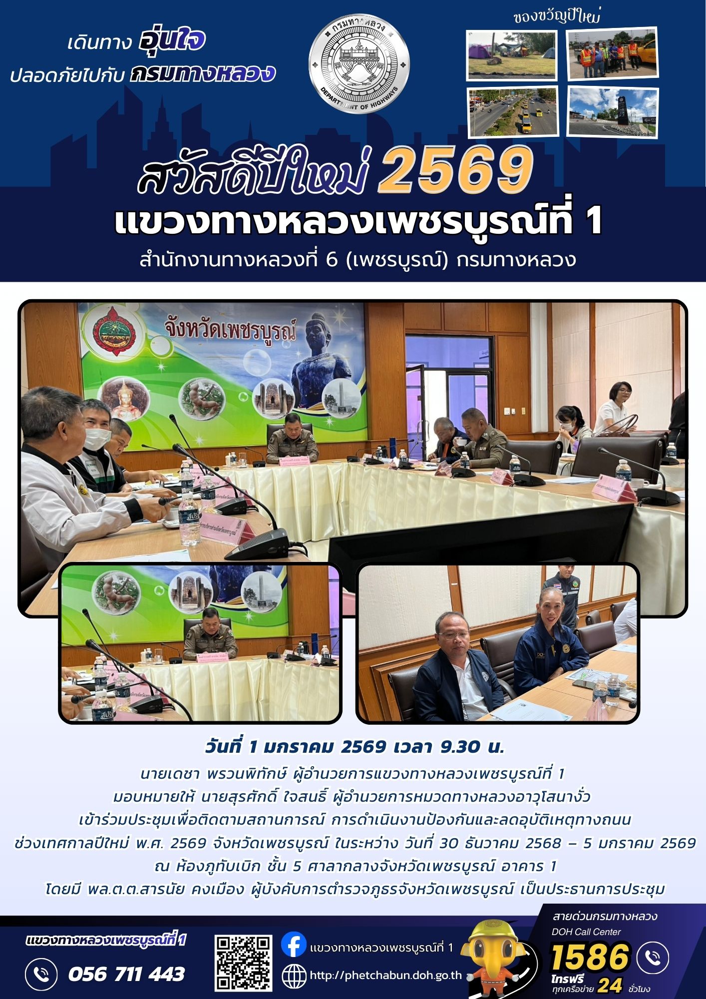 เข้าร่วมประชุมเพื่อติดตามสถานการณ์ การดำเนินงานป้องกันและลดอุบัติเหตุทางถนนช่วงเทศกาลปีใหม่ พ.ศ. 2569 จังหวัดเพชรบูรณ์ ในระหว่าง วันที่ 30 ธันวาคม 2568 – 5 มกราคม 2569 วันที่ 31 ธันวาคม 2568