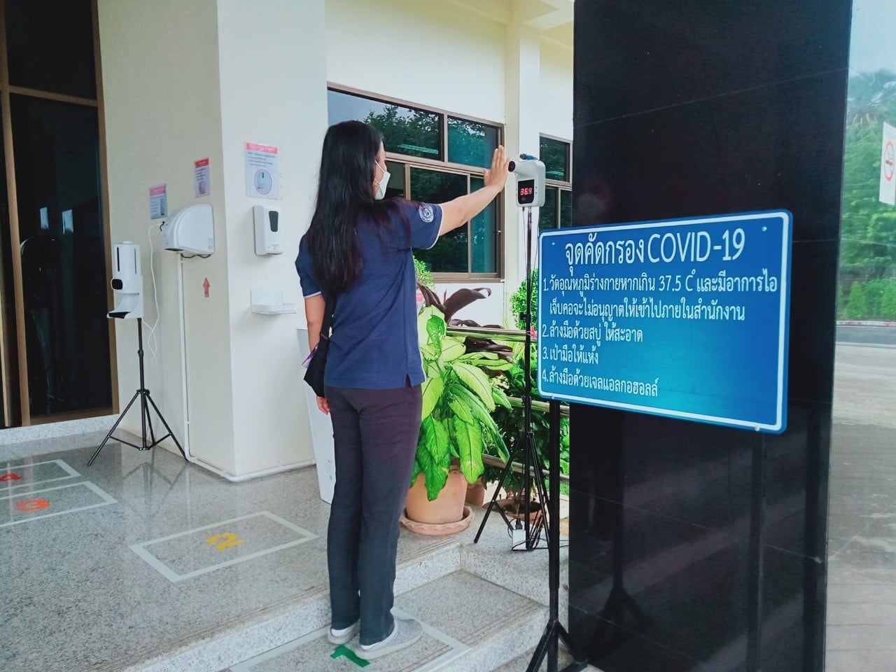 แขวงทางหลวงเพชรบูรณ์ที่ 1 จัดตั้งตู้พ่นน้ำยาฆ่าเชื้อ และจุดคัดกรองด้วยเครื่องวัดอุณหภูมิ วันที่ 15 ตุลาคม 2564 ตั้งแต่เวลา 07.00 น. – 16.30 น.