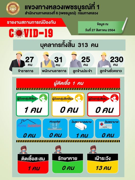 รายงานสถานการณ์ COVID-19 แขวงทางหลวงเพชรบูรณ์ที่ 1 ประจำวันที่ 27 สิงหาคม 2564