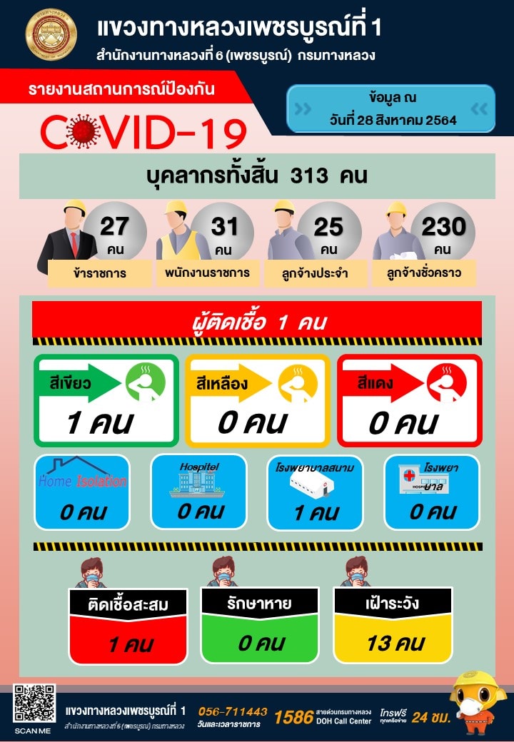 รายงานสถานการณ์ COVID-19 แขวงทางหลวงเพชรบูรณ์ที่ 1 ประจำวันที่ 28 สิงหาคม 2564