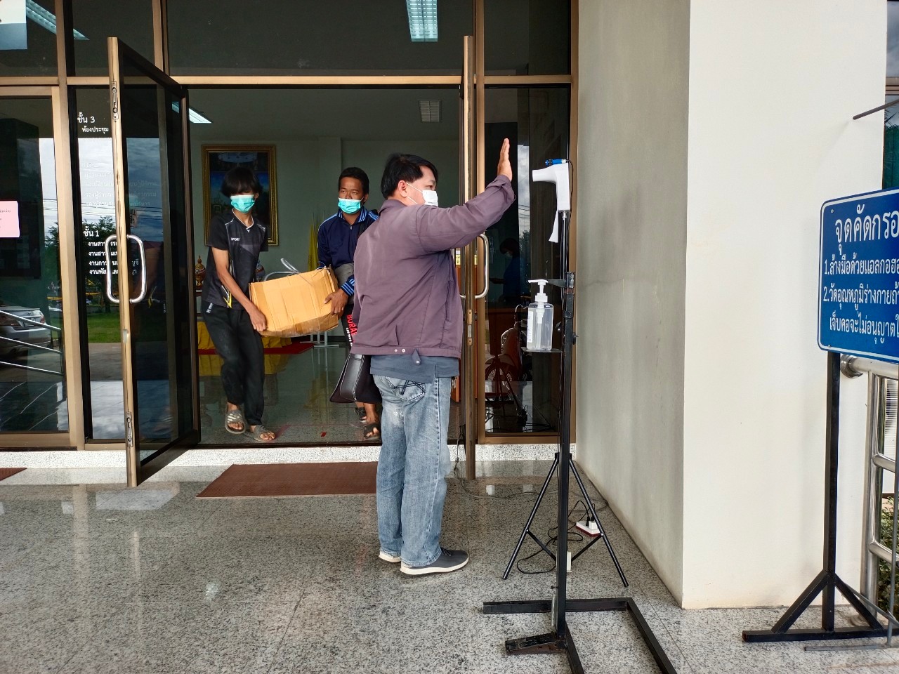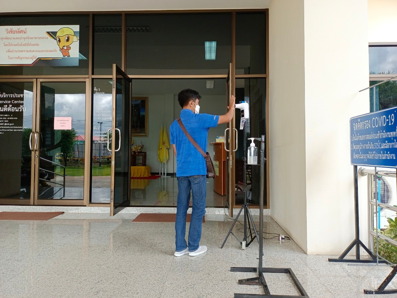 แขวงทางหลวงเพชรบูรณ์ที่ 1 จัดตั้งตู้พ่นน้ำยาฆ่าเชื้อ และจุดคัดกรองด้วยเครื่องวัดอุณหภูมิ วันที่ 1 กรกฎาคม 2564 ตั้งแต่เวลา 07.00 น. – 16.30 น.
