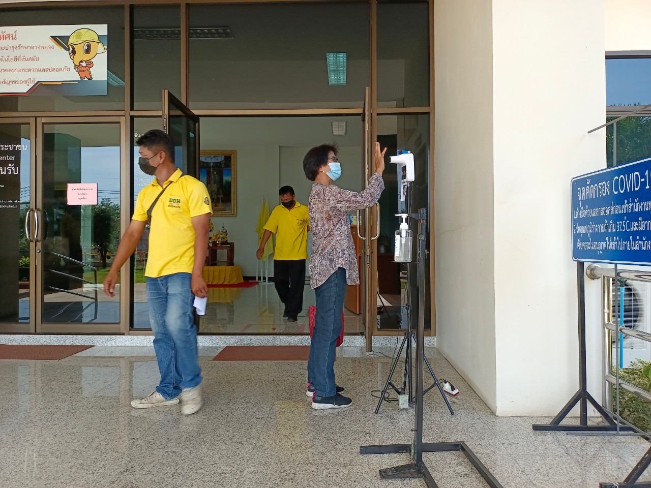 แขวงทางหลวงเพชรบูรณ์ที่ 1 จัดตั้งตู้พ่นน้ำยาฆ่าเชื้อ และจุดคัดกรองด้วยเครื่องวัดอุณหภูมิ วันที่ 5 กรกฎาคม 2564 ตั้งแต่เวลา 07.00 น. – 16.30 น.