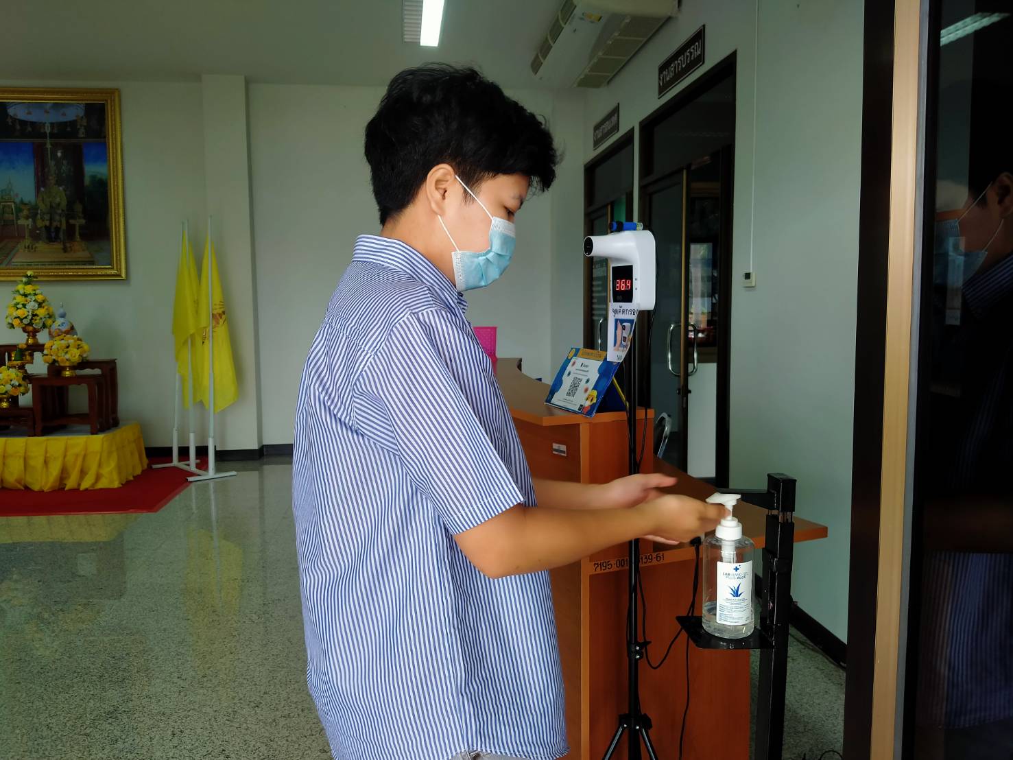 แขวงทางหลวงเพชรบูรณ์ที่ 1 จัดตั้งตู้พ่นน้ำยาฆ่าเชื้อ และจุดคัดกรองด้วยเครื่องวัดอุณหภูมิ
