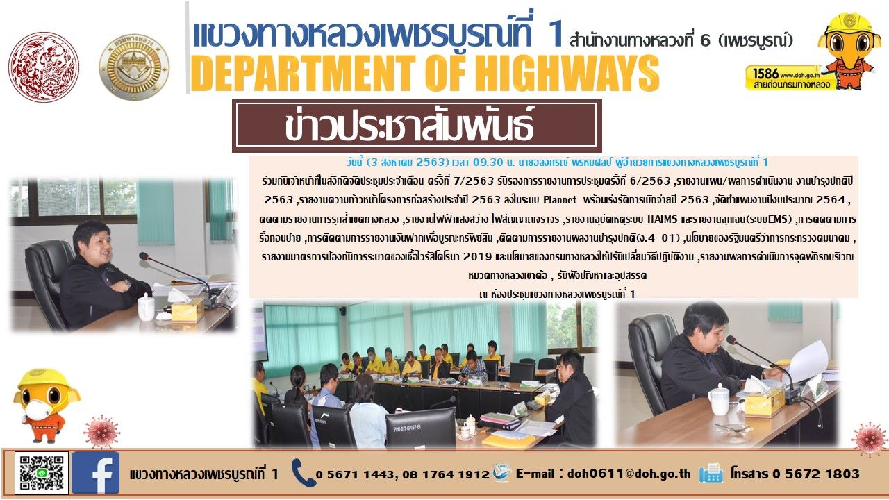 ร่วมกับเจ้าหน้าที่ในสังกัดจัดประชุมประจำเดือน ครั้งที่ 7/2563 |