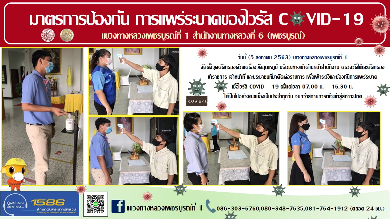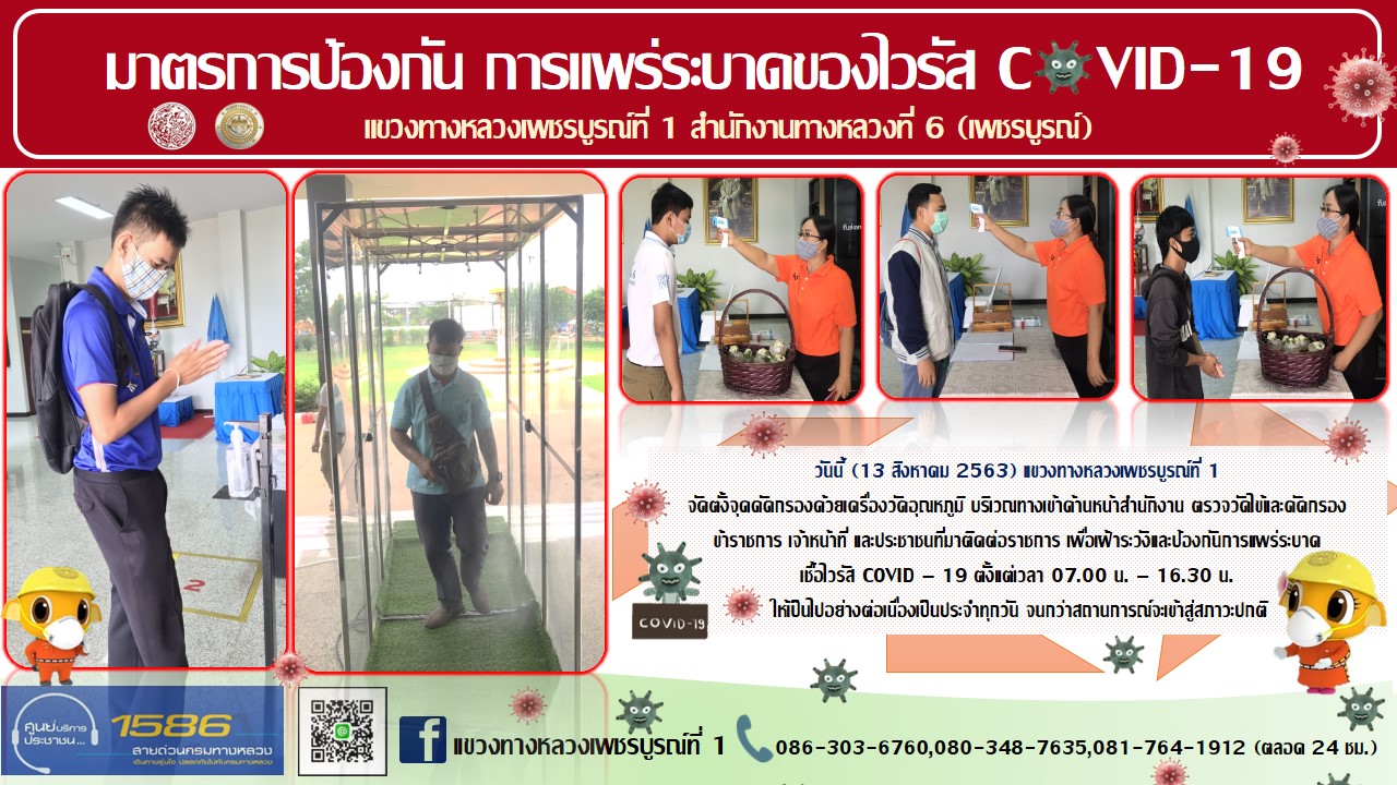 จัดตั้งตู้พ่นน้ำยาฆ่าเชื้อ และจุดคัดกรองด้วยเครื่องวัดอุณหภูมิ |