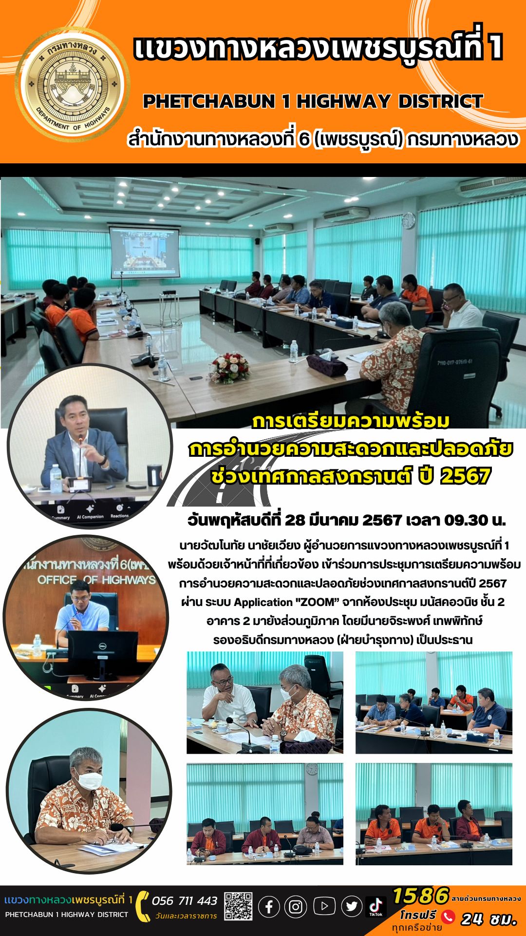 เข้าร่วมการประชุมการเตรียมความพร้อมการอำนวยความสะดวกและปลอดภัยช่วงเทศกาลสงกรานต์ปี 2567 ผ่าน ระบบ Application "ZOOM”