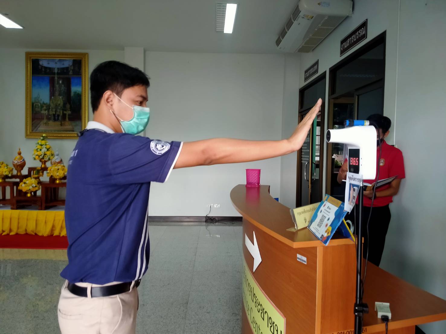 ได้จัดตั้งจุดคัดกรองด้วยเครื่องวัดอุณหภูมิ บริเวณทางเข้าด้านหน้สำนักงาน ตรวจวัดไข้และคัดกรองข้าราชการ เจ้าหน้าที่ และประชาชนที่มาติดต่อราชการ เพื่อเฝ้าระวังและป้องกันการแพร่ระบาด เชื้อไวรัส COVID – 19 ตั้งแต่เวลา 07.00 น. – 16.30 น. ให้เป็นไปอย่างต่อเนื่องเป็นประจำทุกวัน จนกว่าสถานการณ์จะเข้าสู่สภาวะปกติ