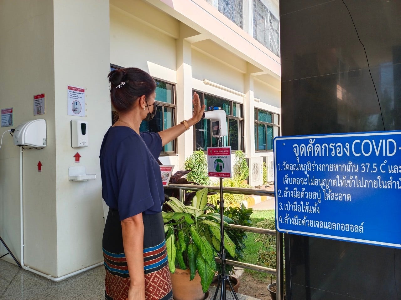 ได้จัดตั้งจุดคัดกรองด้วยเครื่องวัดอุณหภูมิ บริเวณทางเข้าด้านหน้สำนักงาน ตรวจวัดไข้และคัดกรองข้าราชการ เจ้าหน้าที่ และประชาชนที่มาติดต่อราชการ เพื่อเฝ้าระวังและป้องกันการแพร่ระบาด เชื้อไวรัส COVID – 19 ตั้งแต่เวลา 07.00 น. – 16.30 น. ให้เป็นไปอย่างต่อเนื่องเป็นประจำทุกวัน จนกว่าสถานการณ์จะเข้าสู่สภาวะปกติ