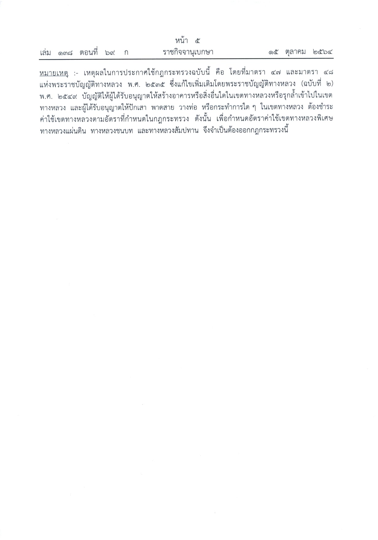 ข้อมูลข่าว : กฎกระทรวง กำหนดค่าใช้เขตทางหลวงพิเศษ ทางหลวงแผ่นดิน ทางหลวงชนบท และทางหลวงสัมปทาน พ.ศ.2564