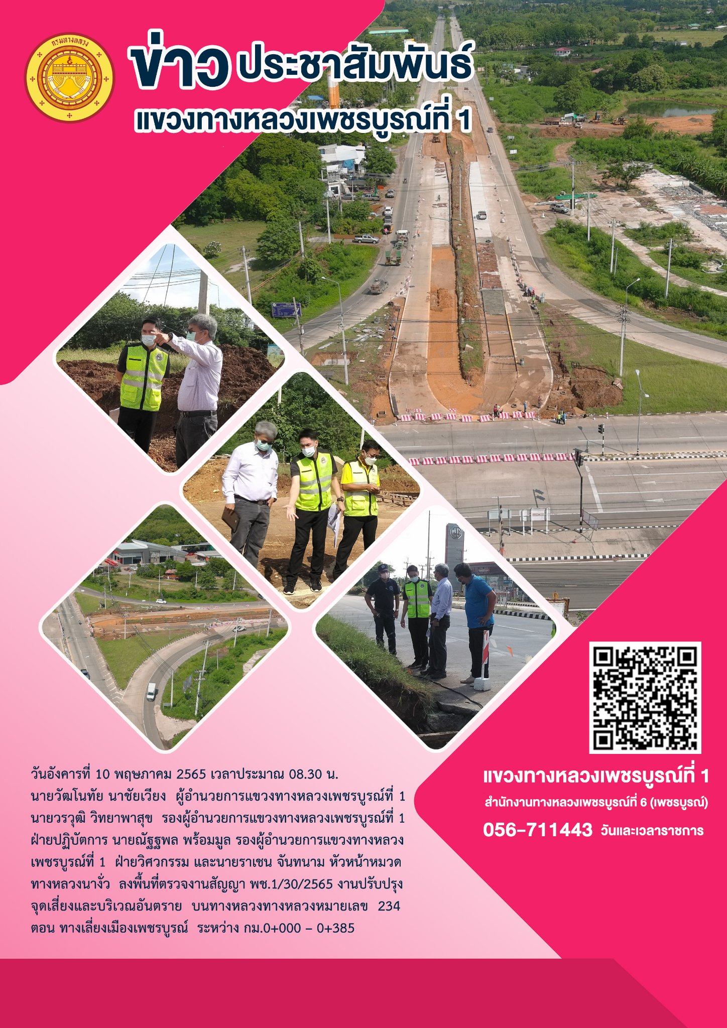 ลงพื้นที่ตรวจงานสัญญา พช.1/30/2565 งานปรับปรุงจุดเสี่ยงและบริเวณอันตรายบนทางหลวงทางหลวงหมายเลข 234 ตอน ทางเลี่ยงเมืองเพชรบูรณ์ ระหว่าง กม.0+000 – 0+385