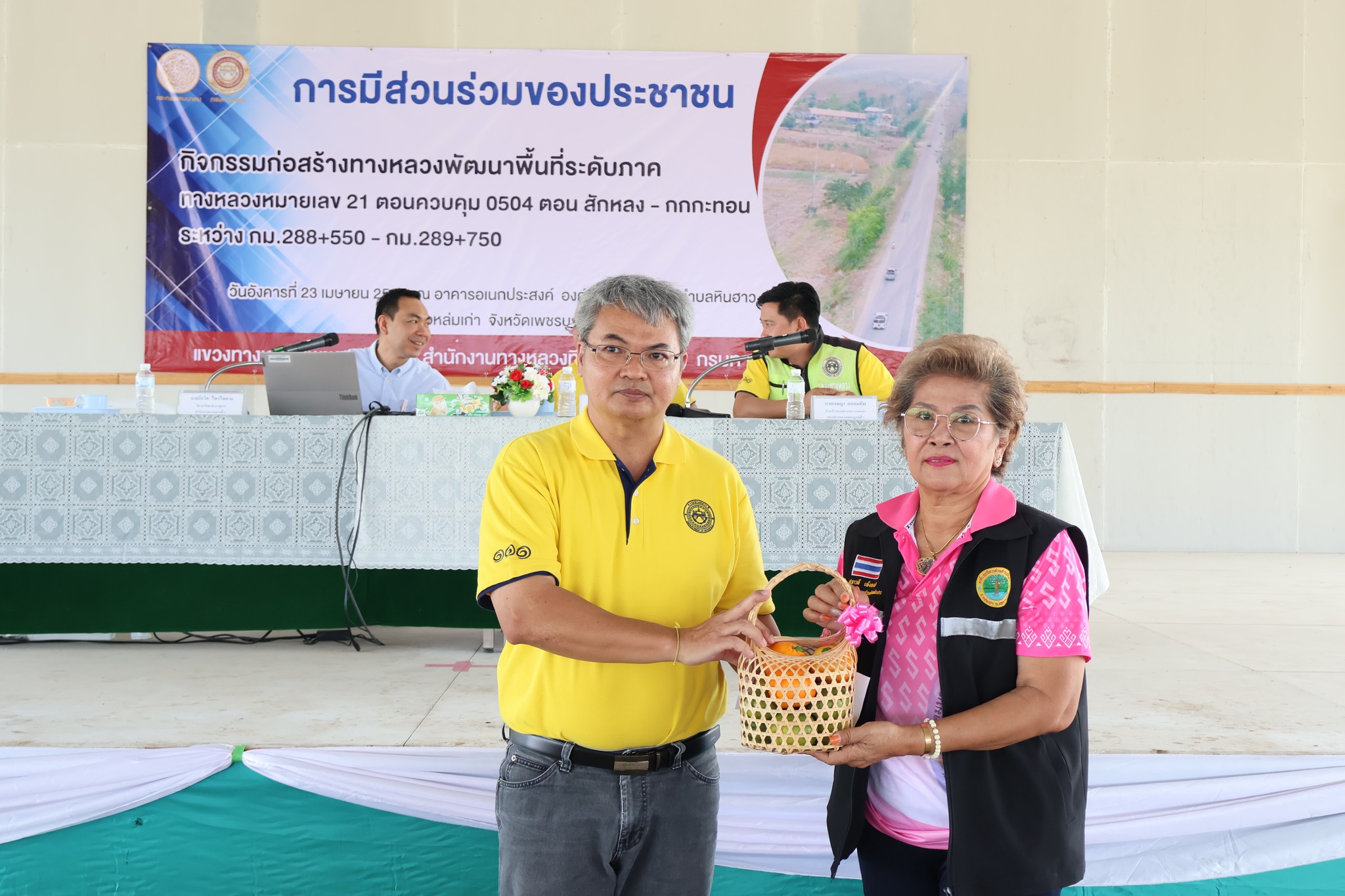 จัดการประชุมการมีส่วนร่วมของประชาชน โครงการก่อสร้างโครงข่ายทางหลวงแผ่นดิน กิจกรรมก่อสร้างทางหลวงพัฒนาพื้นที่ระดับภาค ทางหลวงหมายเลข 21 ตอนควบคุม 0504 ตอน สักหลง – กกกะทอน ระหว่าง กม.288+550 – กม.289+750