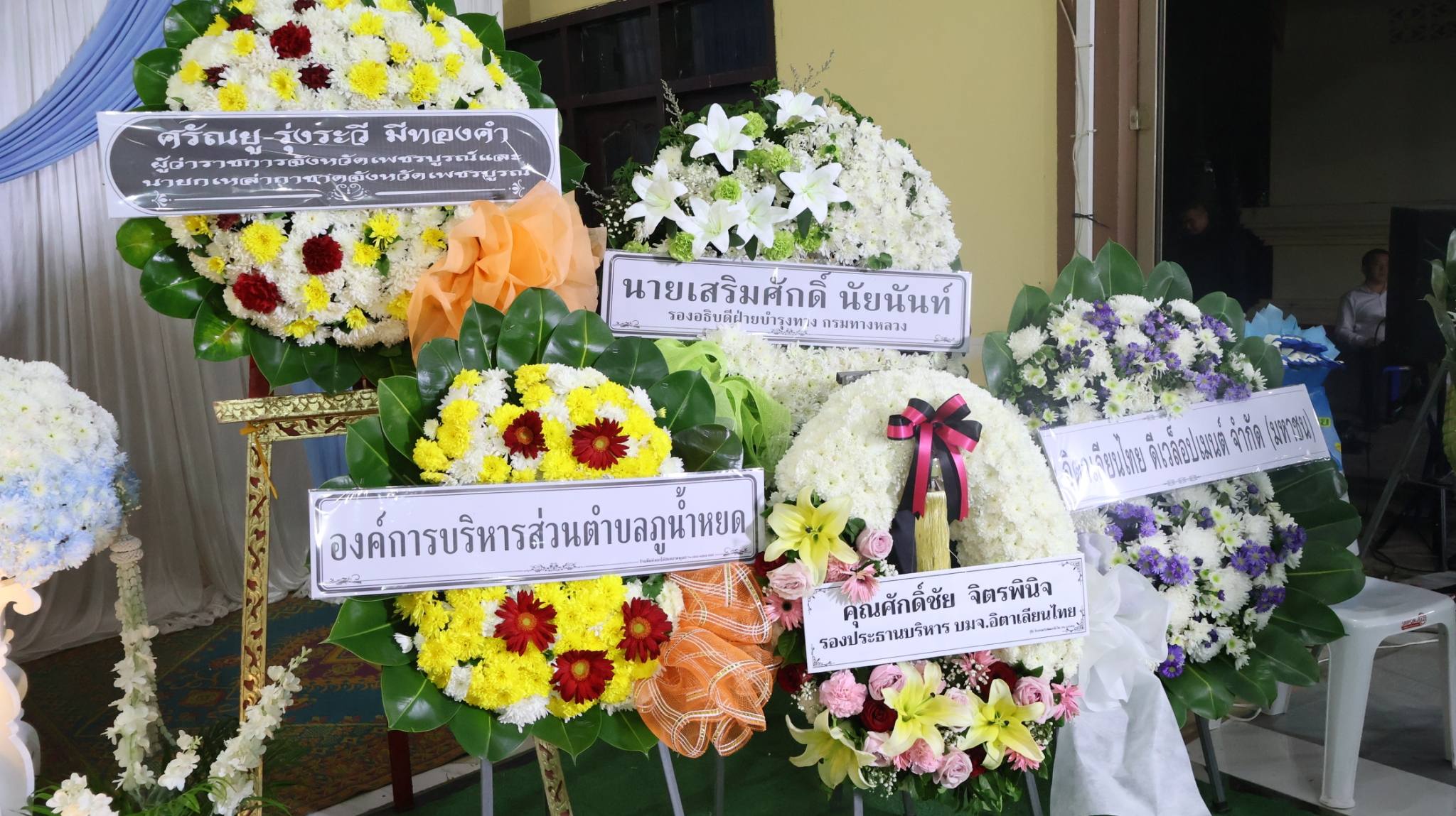 นายปิยพงษ์ จิวัฒนกุลไพศาล อธิบดีกรมทางหลวง (ประธาน) พร้อมด้วย นายสมบูรณ์ เทียนธรรมชาติ ผู้อำนวยการสำนักสำรวจและออกแบบ, นายธนศักดิ์ วงศ์ธนากิจเจริญ ผู้อำนวยการสำนักก่อสร้างสะพาน, นายวีระพล วงศ์วิเชียร เลขานุการกรม , นายทวีศักดิ์ รุจิจรรยาวัฒน์ ผู้อำนวยการสำนักงานทางหลวงที่ 6, นายเดชา พรวนพิทักษ์ ผู้อำนวยการแขวงทางหลวงเพชรบูรณ์ที่ 1 พร้อมด้วยคณะเจ้าหน้าที่ สำนักงานทางหลวงที่ 6 (เพชรบูรณ์) และ แขวงทางหลวงในสังกัด เข้าร่วมพิธีสวดพระอภิธรรม นายสมพงษ์ ศรีสุข ผู้เสียชีวิตจากกรณีอุบัติเหตุโครงเหล็ก LG ถล่ม บริเวณถนนพระราม 2 ณ วัดคลองยางศิริธรรม ตำบลภูน้ำหยด อำเภอวิเชียรบุรี จังหวัดเพชรบูรณ์ โดยกรมทางหลวงได้เป็นเจ้าภาพในพิธีสวดพระอภิธรรม