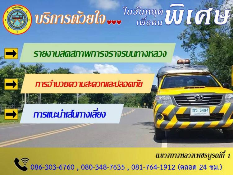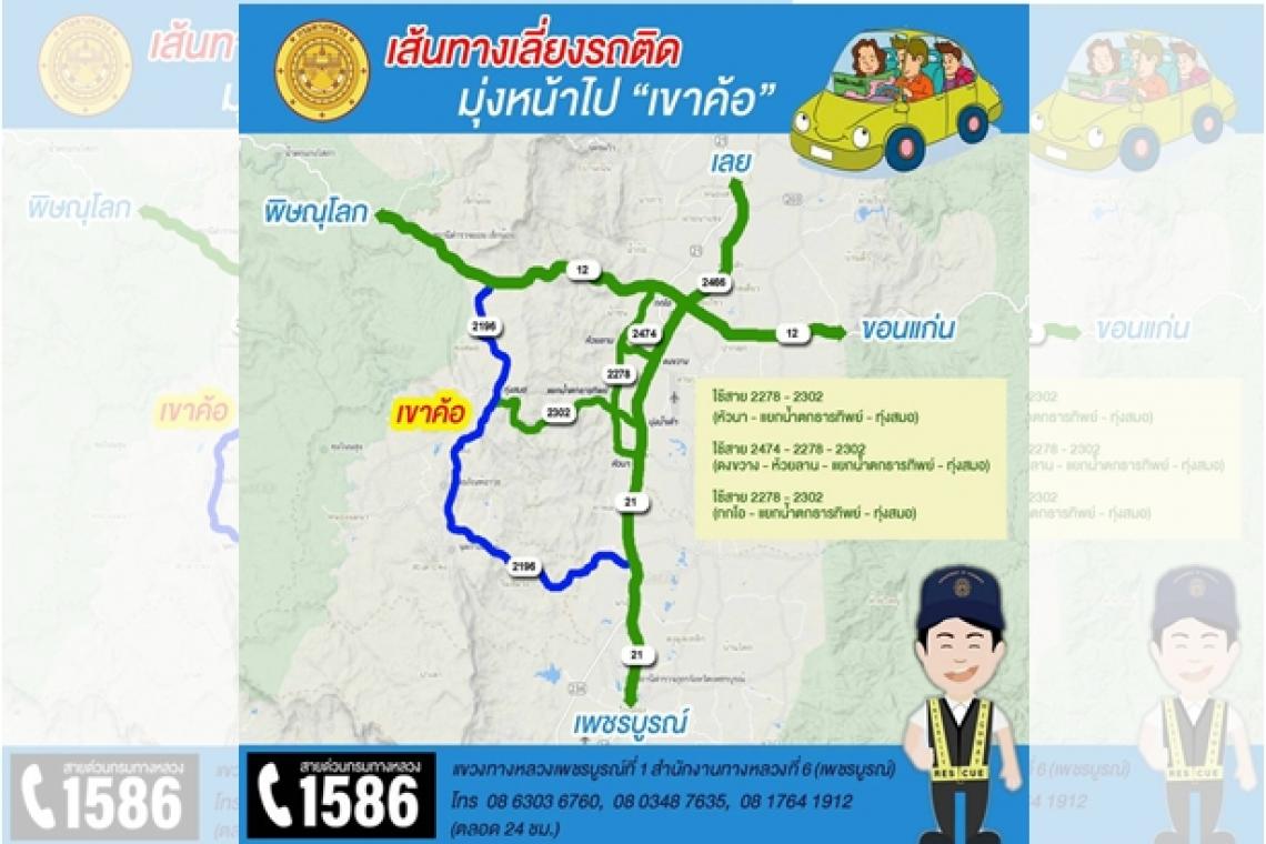ทั้งนี้ แขวงทางหลวงเพชรบูรณ์ที่ 1 สำนักงานทางหลวงที่ 6 กรมทางหลวง ได้เตรียมความพร้อมดูแลบริการประชาชนในการเดินทางให้ได้รับความสะดวก และ ปลอดภัย ในทุกเส้นทาง ตลอดจนวางมาตรการแก้ไขปัญหาแหล่งท่องเที่ยวในช่วงวันหยุดยาวนานหลายวัน และ ฤดูกาลท่องเที่ยวของจังหวัด มีดังนี้ 1. แนะนำเส้นทางเลี่ยง ไปเขาค้อ โดยประชาสัมพันธ์ ผ่านสื่อโซเชียล Facebook และ Line 2. รายงานสดสภาพการจราจรช่วงเทศกาล โดยอากาศยานไร้คนขับ (Drone) ผ่าน Facebook Live เพื่อประชาสัมพันธ์ให้ผู้ใช้เส้นทางวางแผนการเดินทาง 3. เตรียมความพร้อมเจ้าหน้าที่หมวดทางหลวงที่อยู่ในแหล่งท่องเที่ยว เพื่ออำนวยความสะดวกและปลอดภัยด้านการจราจร