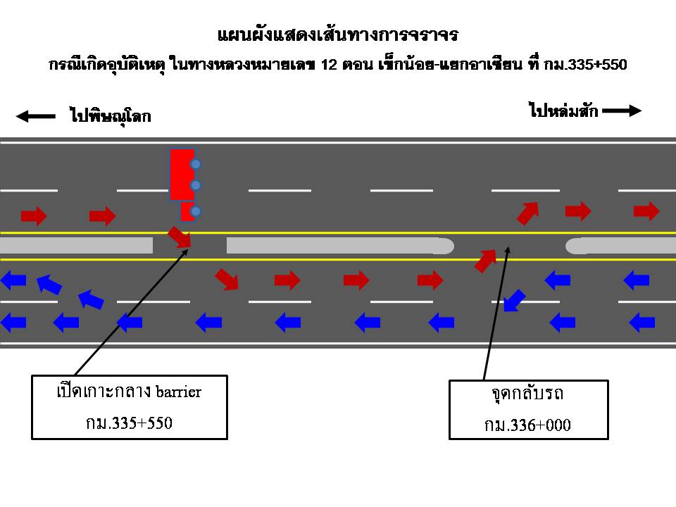 “แผนผังแสดงเส้นทางการจราจร กรณีอุบัติเหตุสาย 12” #โปรดใช้ความระมัดระวัง